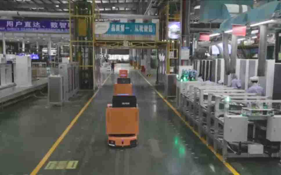 为车载冰箱物流配送打造的智能解决方案,,,包含产中物流通过潜伏举升AMR搬运至线边,,,产后成品物流智能仓储,,,,流程包含产中物流智能齐套入库,,线边安灯叫料AMR智能配送至线边,,,成品入库、、、、出库,,,通过无人堆高车机器人,,,,智能仓储管理替代人工作业管理,,,实现更高存储、、更高效率、、更具柔性化的解决方案。。。